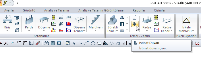 Ribbon menüde Betonarme sekmesi Temel - Zemin başlığı altından ulaşabilirsiniz.