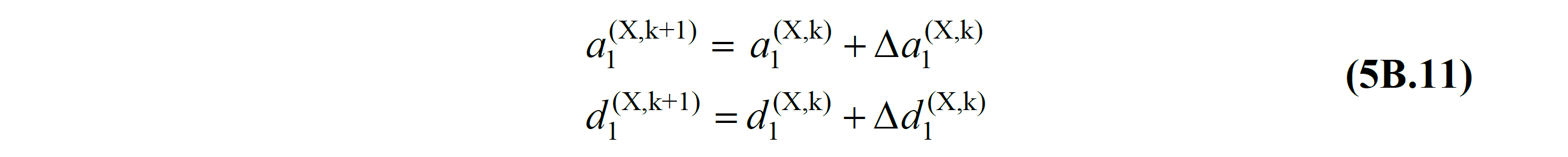 TBDY 5B.2.5 'te anlatıldığı şekilde, k 'ıncı itme adımında elde edilen Modal yerdeğiştirme artımı Δd1(X,k) kullanılarak TBDY Denklem 5B.10 'ile hesaplanan modal sözde ivme artımı Δa1(X,k) , bir önceki adımın sonunda elde edilen değerler ile toplanarak TBDY Denklem 5B.11 'deki şekilde elde edilir.