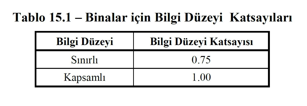 Mevcut binalar için sargılı-sargısız beton modeli ve donatı çeliği gerilme-şekil değiştirme bağıntısı elde edilirken Tablo 15.1 'de verilen mevcut malzeme dayanımları için Bilgi Düzeyi Katsayıları kullanılır. Benzer şekilde, sargılı beton modeli başlık bölgesi enine ve boyuna donatı durumu gözönüne alınarak otomatik oluşturulur.