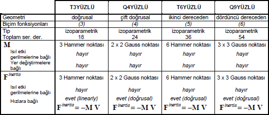 Kabuk kütle elemanları, yer değiştirme ve dönme serbestlik derecelerinin her ikisine de uygulanmaktadır.