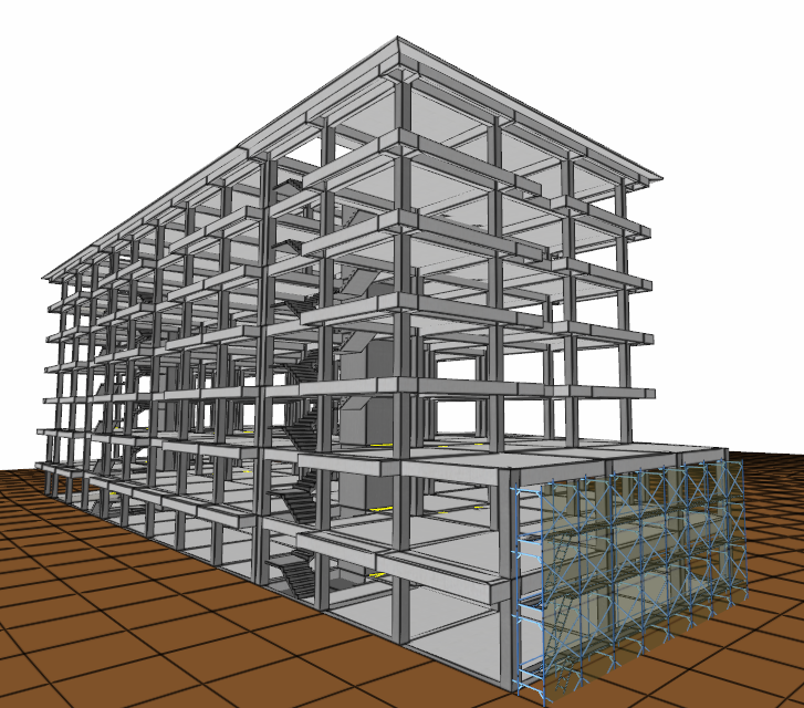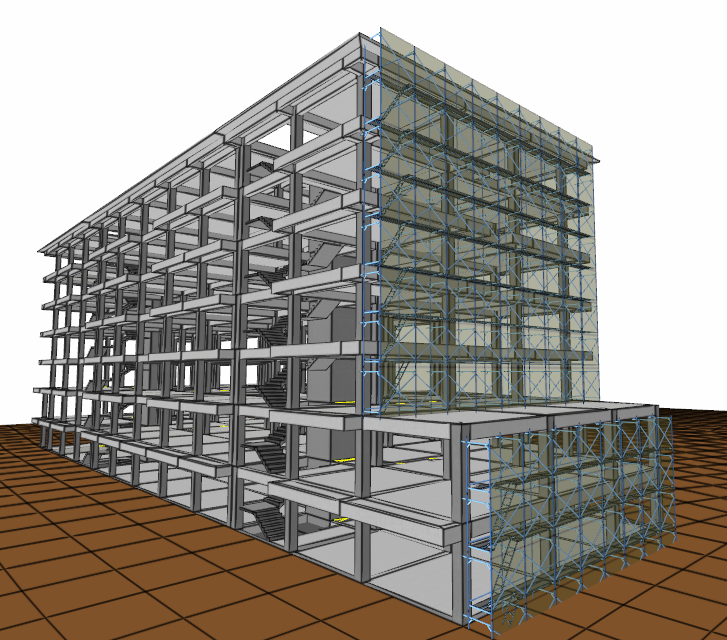 İskele Makrosu komutuyla statik projede yer alan, kot farkı var olan cephelerde iskeleler kademeli olarak oluşturulur.