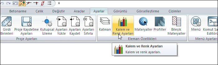 Kalem kalınlıkları ve renk ayarlarına ayrıca Genel Ayarlar, Genel Ayarlar sekmesinden de ulaşabilirsiniz.