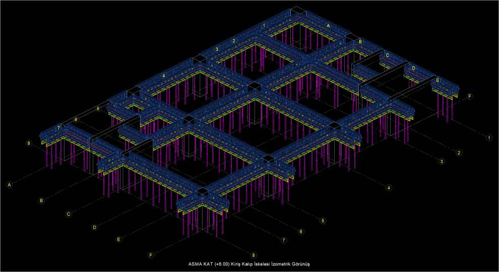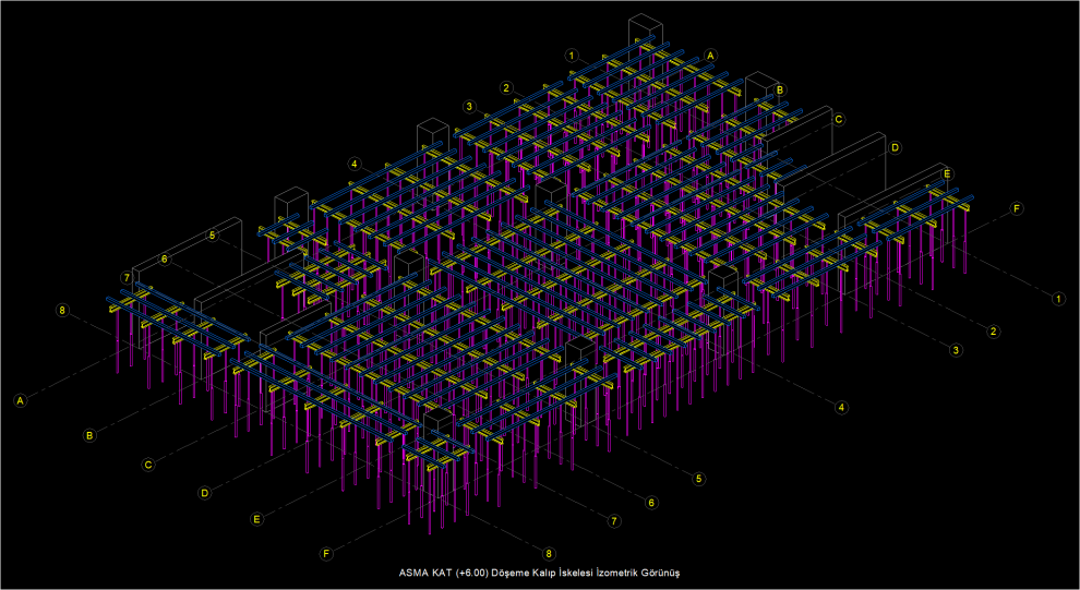 Aktif katın kalıp iskelesinin kolon/perde, kiriş ve döşemelerinin 3B izometrik çizimleri oluşturulacaktır.