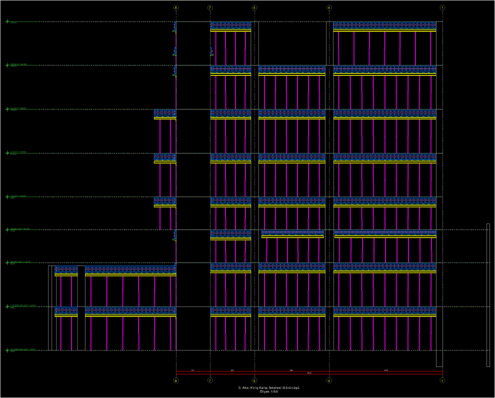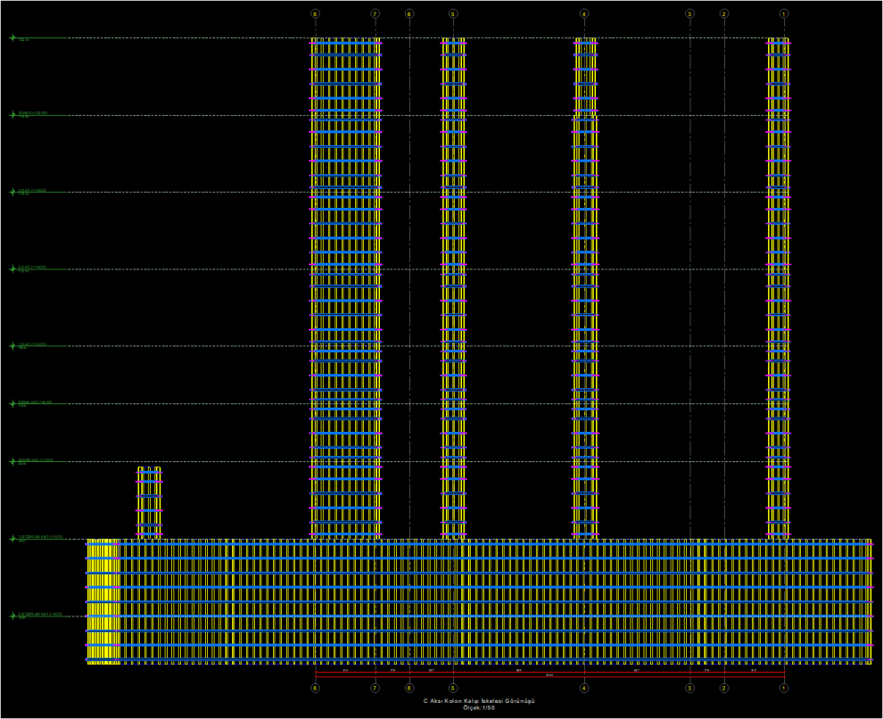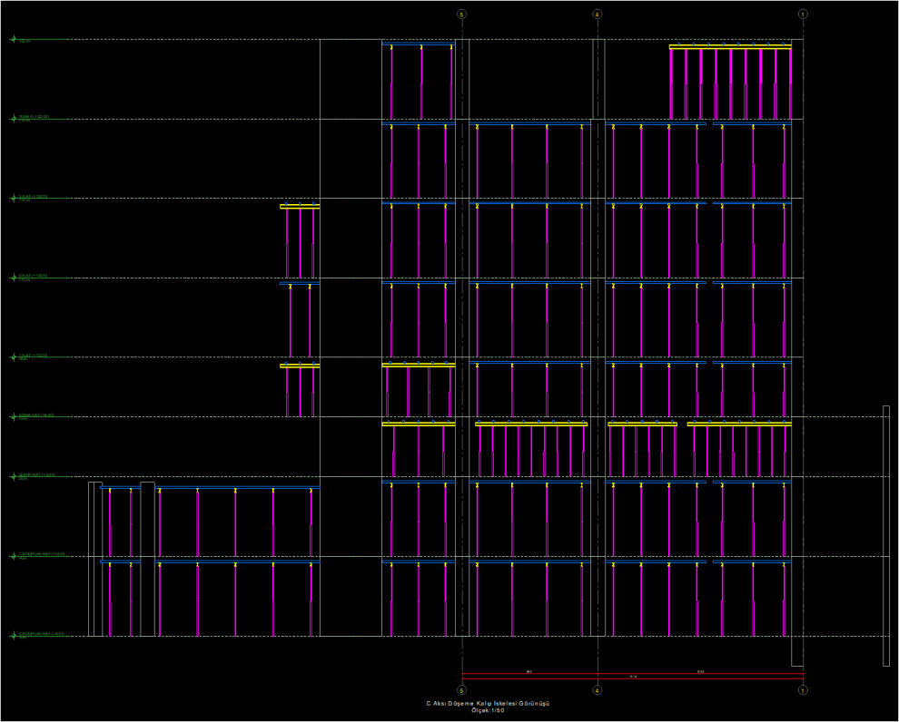 Kalıp iskelesinin, seçili aksta yer alan kolon/perde, kiriş ve döşeme görünüş çizimleri oluşturulacaktır.