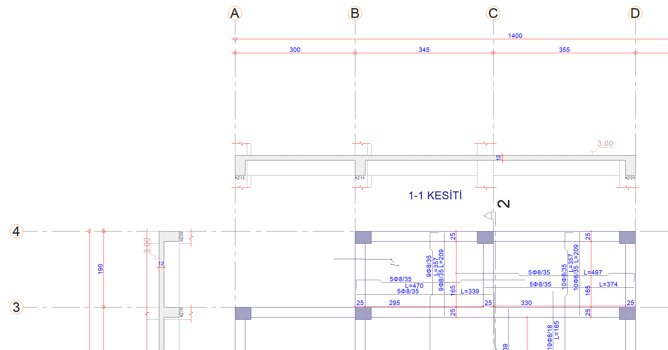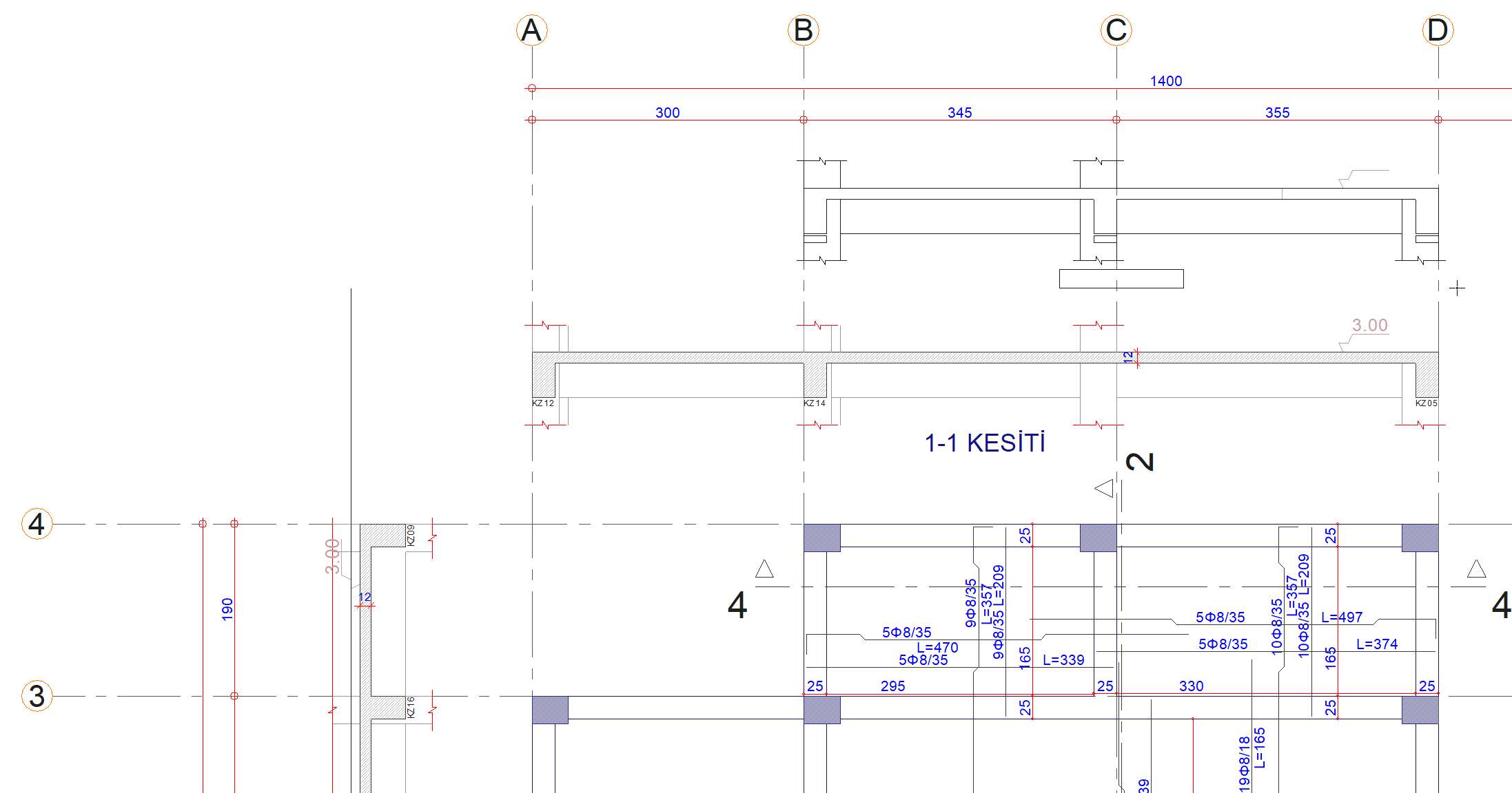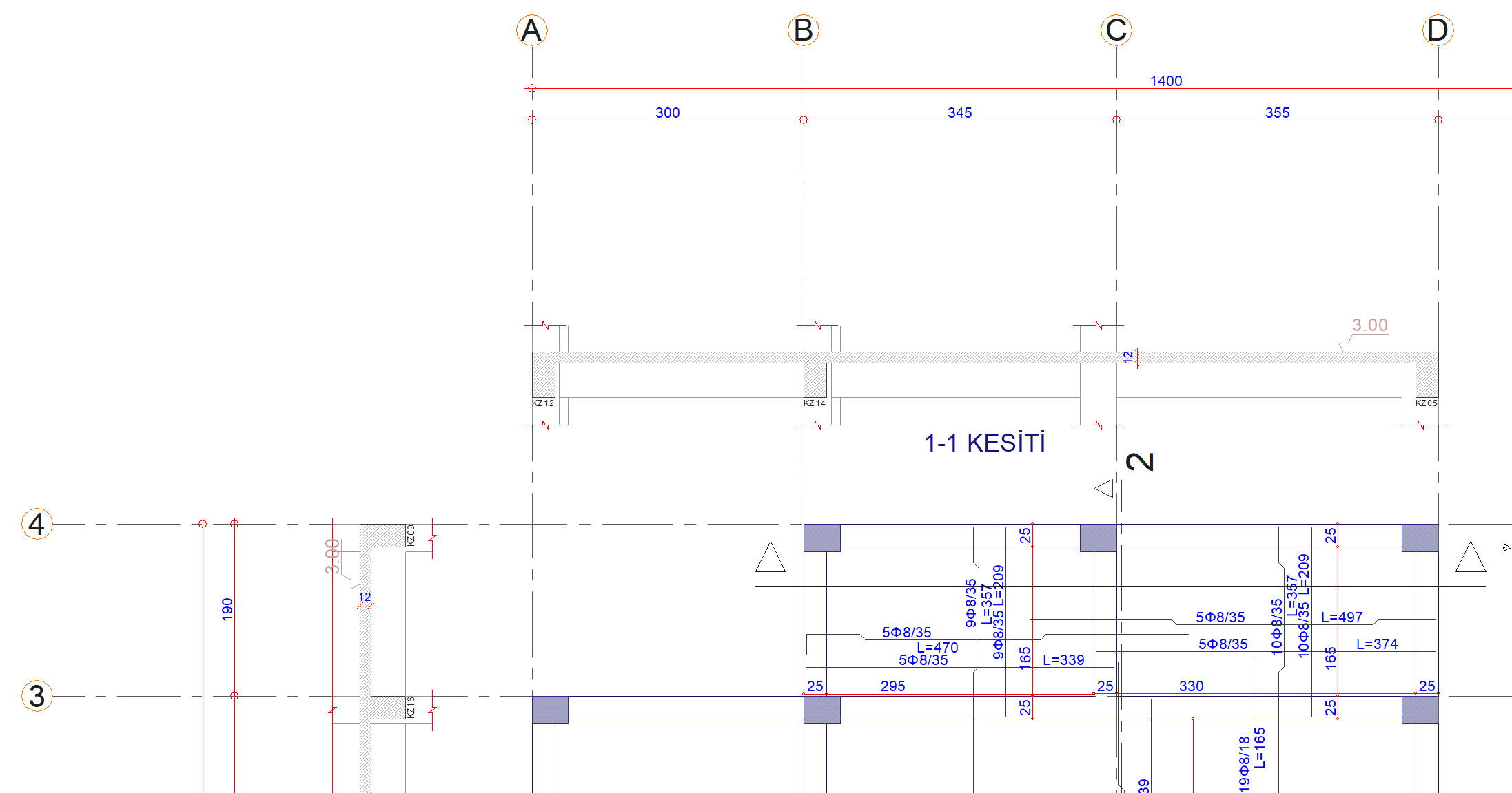 Kesit adı ![]() Kesitin planda görünen adıdır. Örneğin 4 yazılırsa kesit hattının başlangıcına ve bitişine 4 yazılır. |