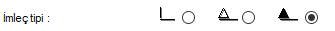 İmleç tipi ![]() Kesit hattının başlangıç ve bitişine konan yön işaretinin tipidir. Kullanılmak istenen işaret, fare imleci onun üstündeyken farenin sol tuşunu tıklamak suretiyle seçilir. |