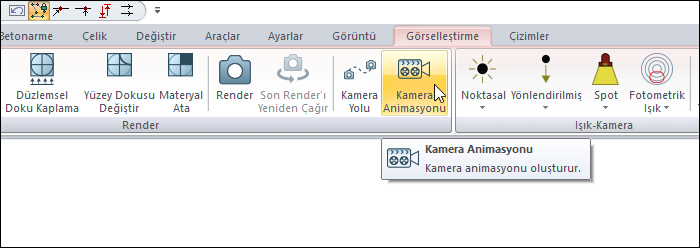 Ribbon menü Görselleştirme sekmesi Render başlığı altından ulaşabilirsiniz.