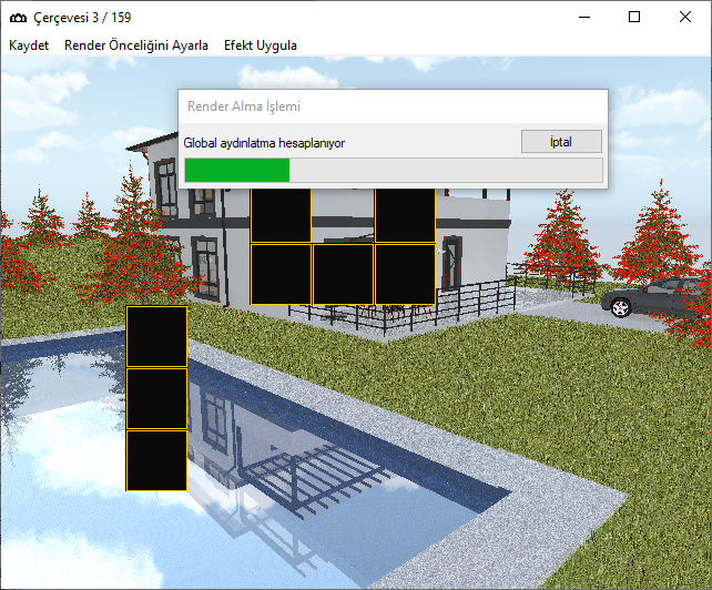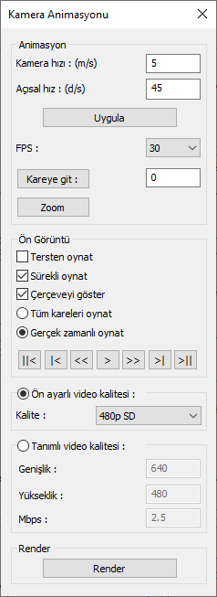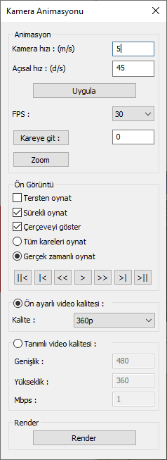 Kamera Animasyonu diyaloğunda istenilen ayarlar yapıldıktan sonra render butonuna basılır.