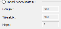 Tanımlı video kalitesi ![]() Genişlik ve yükseklik değerleri isteğe bağlı olarak ayarlanır. |