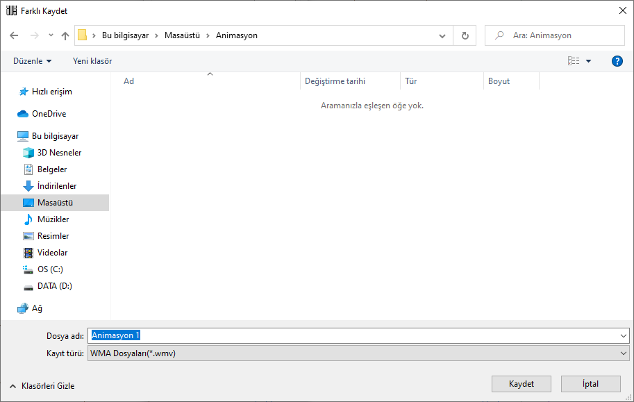Animasyona isim verilerek kaydedilmesi ![]() |