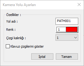 Kamera Yolu Ayarları diyaloğu açılacaktır.
