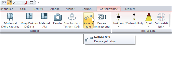 Ribbon menü Görselleştirme sekmesi Render başlığı altından ulaşabilirsiniz.