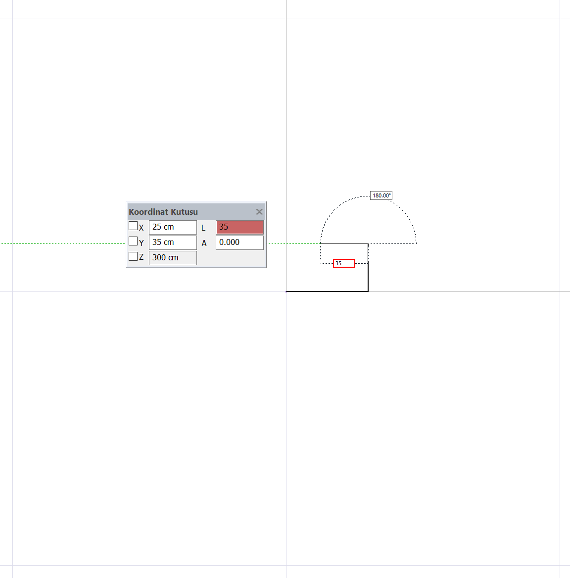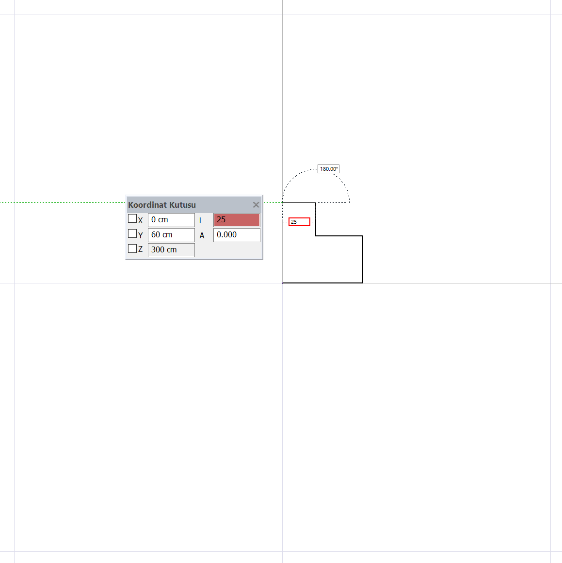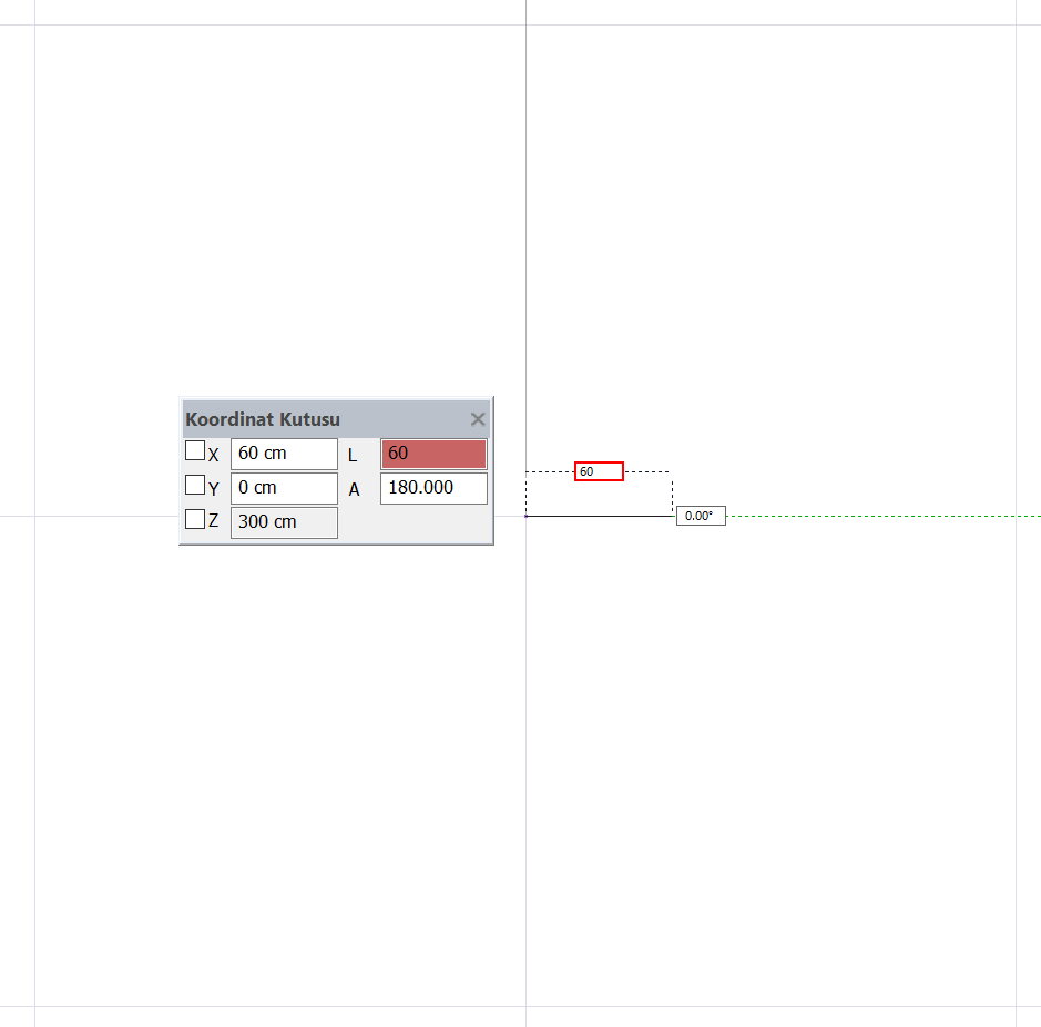 L tuşuna basın. 60 yazıp enter tuşuna basın. L satırı kırmızıya boyanacak ve imleç 60 cm’e kilitlenecektir.
