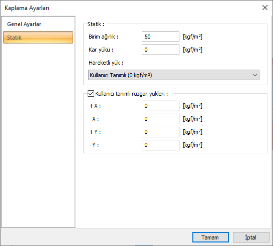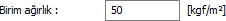 Birim ağırlık ![]() Kullanılan malzemeye göre kaplamanın birim ağırlığı girilir. |