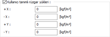 Kullanıcı tanımlı rüzgar yükleri ![]() İsteğe bağlı olarak kaplama elemanlarına istenilen yönlerde rüzgar yükü girilebilir. |