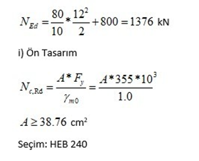 Yönetmeliklere ait yükleme kombinasyonlarının etkisi örneğe yansıtılmamış olup, sadece G yüklemesi altında tasarım gerçekleştirilmiştir.