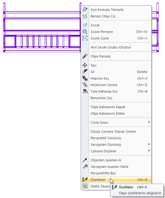 Ekleme/silme yapmak istediğiniz iskeleyi seçin ve farenin sağ tuşuna tıklayın. Açılan sağ tuş menüden Özellikler satırını tıklayın.