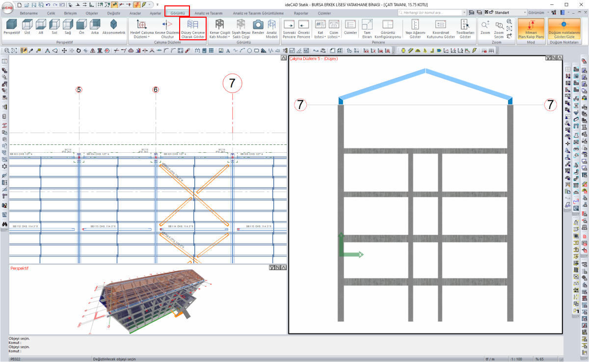 Örnek 7 aksı düşey çerçeve görüntüsü: