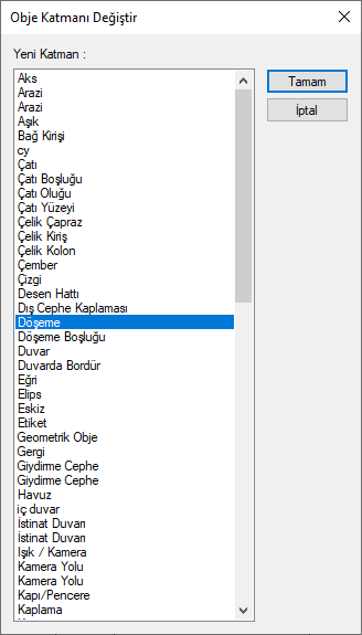Tamam butonu tıklanıp diyalogdan çıkıldığınızda seçilen objenin katmanı değişecektir.