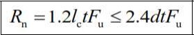 Bir bulon deliğinin karakteristik ezilme kuvveti dayanımı Rn, kayma etkisinde ezilme sınır durumu esas alınarak şu şekilde hesaplanır: