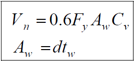 Kayma etkisindeki enkesitin ve birleşim elemanlarının karakteristik kesme kuvveti dayanımı, Rn kayma etkisinde akma ve kırılma sınır durumları için şu şekilde hesaplanır: