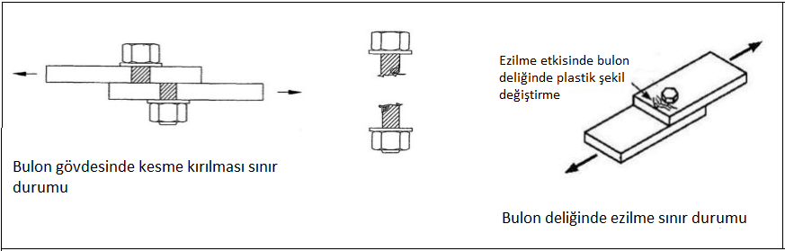 Ezilme etkili birleşimlerde dayanım 2 adet sınır durum kontrol edilerek aralarından en küçüğüne göre belirlenir.