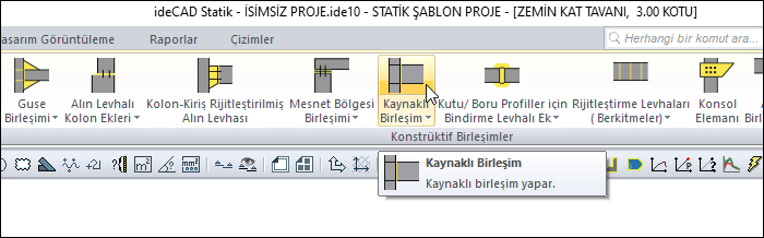 Çelik menüsünden Kaynaklı Birleşim satırını tıklayın.