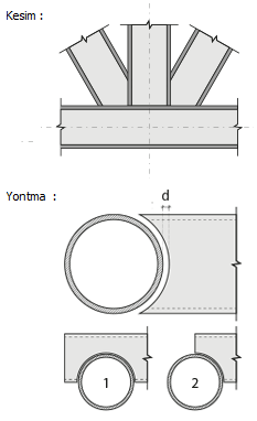 Kaynaklar ![]() Birleşim yerlerine yapılacak kaynakların kalınlık, tip ve açı değerleri verilir. Şantiyede yapılıp yapılmayacağı bilgisi girilir. |