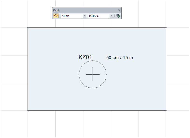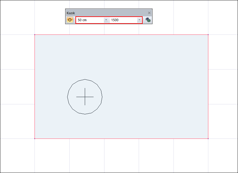 Kazık temel toolbarında yer alan yükseklik ve yarıçap kutucuklarına istediğiniz değerleri girin. Yarıçap değerini değiştirdikçe kazık temelinizin öngörüntüsü değişecektir.