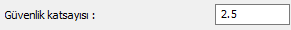Güvenlik katsayısı ![]() İzin verilen toplam taşıma gücü kapasitesinin hesaplanmasında kullanılan güvenlik katsayısı değeri girilir. Qa = Qu / GüvenlikKatsayısı Qu = Kazığın nihai taşıma gücü momenti Qa = Kazığın izin verilen(emniyetli) taşıma gücü momenti |