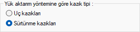 Yük aktarımına göre kazık tipi ![]() Kazığın uç kazık mı yoksa sürtünme kazık olarak mı tasarım yapılacağı bilgisini veriniz. |