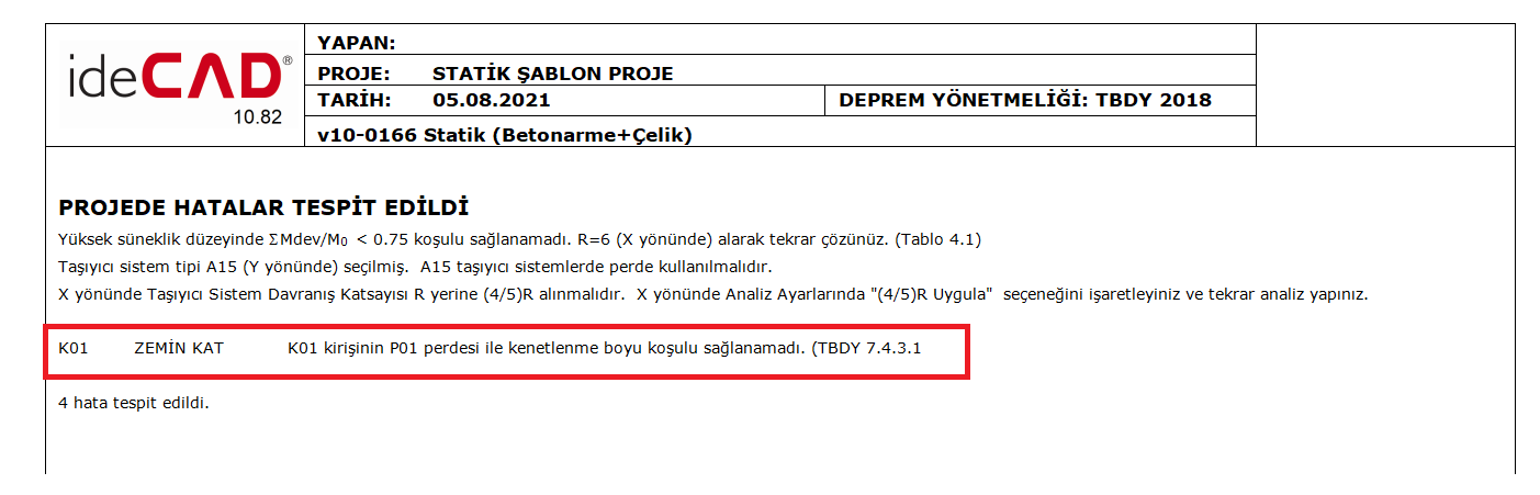 Aynı zamanda v10.82 ile birlikte yetersiz kenetlenme boyu (ab) hatası raporlarda da görülebilmektedir.