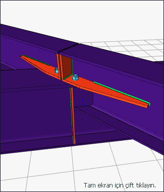 Kertme Kiriş Birleşimi komutu ile farklı kotlarda birleşen, biri tek diğeri iki parça çelik elemana verilen sayı kadar rijitleştirme levhası ile birleşim tanımlanır.