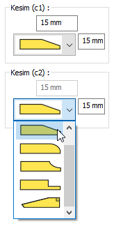 Kesimler (c1,c2) ![]() Levhaların sahada kolay montajı için şev kullanılmasına, şev tipine ve geometrik özellikleri değer girilerek belirlenir. |