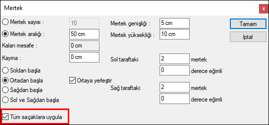 Açılan mertek diyaloğunda mertek ayarlarınızı yapın.