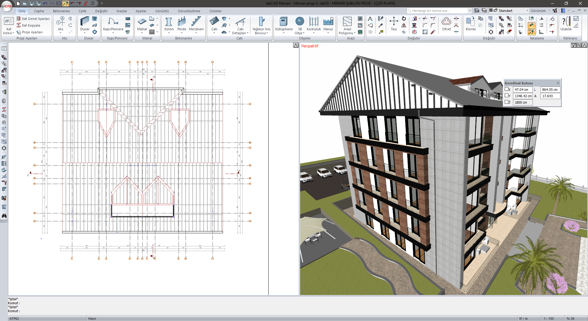 Perspektif ekranda dik yüzeylerinize tanımlanmış bütün çatı detaylarını silin.