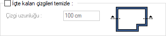 İçte kalan çizgileri temizle ve çizgi uzunluğu ![]() Bu seçenek, kesit veya görünüş hattının yapı konturu içerinde kalan kısmının çizilip çizilmeyeceğini düzenler. Seçenek işaretli değilse, kesit ve görünüş hattı yapı konturu içinde de gösterilir. Seçenek işaretli ise kesit hattı ancak çizgi uzunluk değeri kadar yapı konturu içinde gösterilir. |