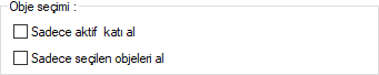 Obje seçimi ![]() Sadece aktif katın ya da seçilen objelerin kesiti seçeneklerden biri işaretlenerek alınabilir. |