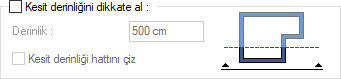 Kesit derinliği dikkate al ![]() Bu seçenek ile kesit/görünüş çizgisine paralel olarak bir derinlik belirlenip sadece o alanın kesiti/görünüşü alınır. |