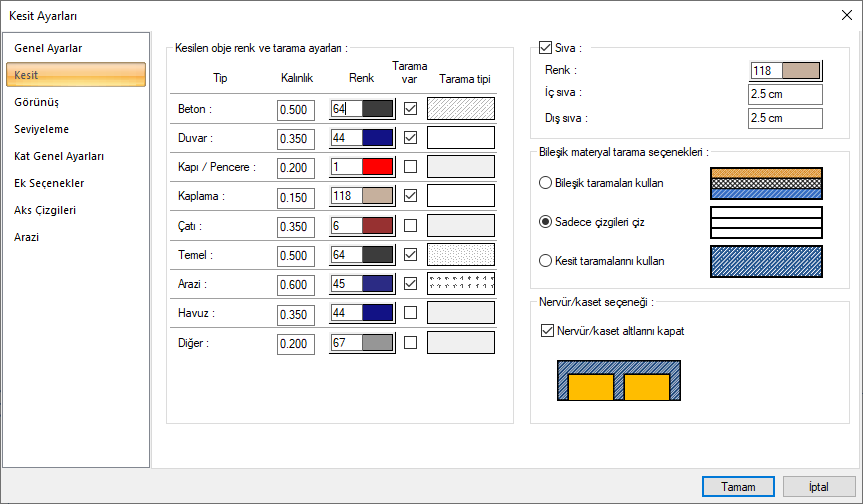 Sıva ![]() Kesitte, objelerde sıva olup olmayacağını belirleyen seçenektir. |