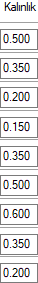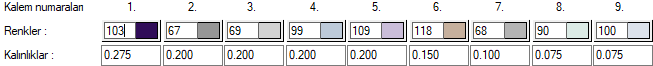 Kalınlık ![]() Kesilen objelerin kesitte görünecek kalem kalınlığı listelenir. Kalınlık satırında atanan rengin kalınlık değeri görülmektedir. |