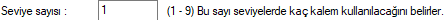 Seviye sayısı ![]() Kesit ve görünüşte dikkate alınan seviyelere atanacak kalem sayısıdır. Bu satırda girilen değere göre seviyelerde uygulanacak renkler belirlenir. Örneğin 3 farklı seviyelemesi olan bir görünüşte, seviye sayısı 5 girilirse, 1. seviye 1.renkle; 2. seviye 2. renkle; 3.seviye 3. renkle; 4.seviye 4. renkle; 5.seviye 5. renkle çizilir. Seviye sayısı 3 girilirse, 1.seviye 1.renkle; 2. seviye 2.renkle; 3., 4. ve 5. seviyeler 3.renkle çizilirler. Seviye sayısı 1 girilse, tüm seviyeler 1.renkle çizilir. |