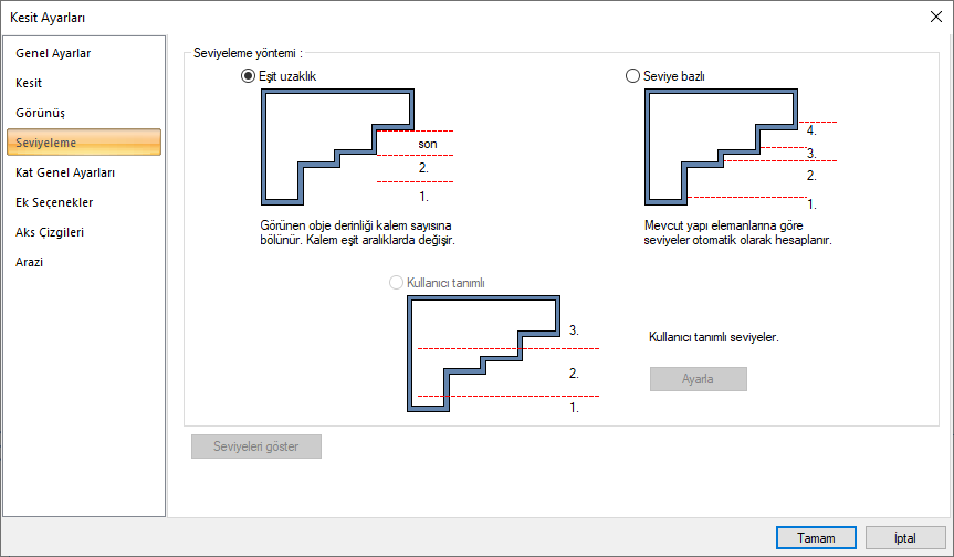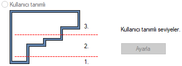 Kullanıcı tanımlı ![]() Ayarla butonu tıklanmak suretiyle seviyeler, kullanıcı tarafından proje üstünde işaretlenerek belirlenir. |