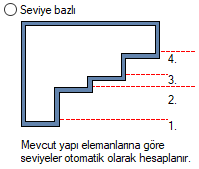 Seviye bazlı ![]() Mevcut yapı elemanlarının kesit veya görünüş hattına yakın ya da uzak olma konumlarına bakılarak seviyeler otomatik hesaplanır. |