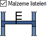 Malzeme listeleri ![]() Çizilen elemanlara ait malzeme listesini kesitte gösterir. Malzeme listesi yazı detayları diyaloğu tıklanarak hazırlanabilir. |