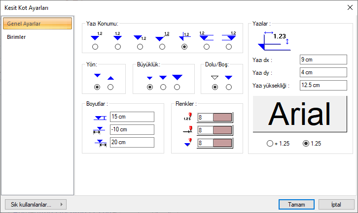 Kesit Kot Ayarları - Genel Ayarlar Sekmesi