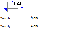 Yazı dx/yazı dy ![]() Yazı dx ve Yazı dx ve Yazı dy kutularına girilen değerler girilerek yazının kot simgesine göre yeri ayarlanır. |