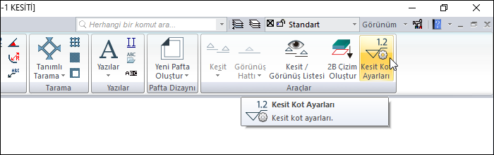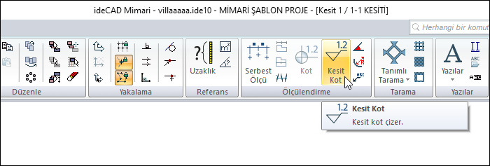 Ribbon menüde Kesit Kot ikonunu tıklayın.