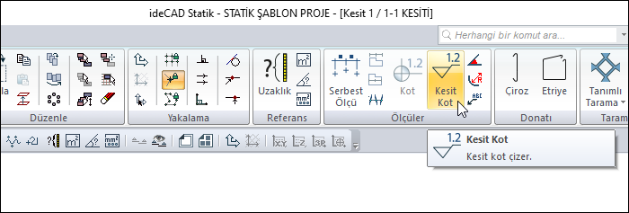 Kesit ölçülendirme ![]() Kesit ölçüsü oluşturur. Kesit ve görünüş pencerelerinde aktiftir. |