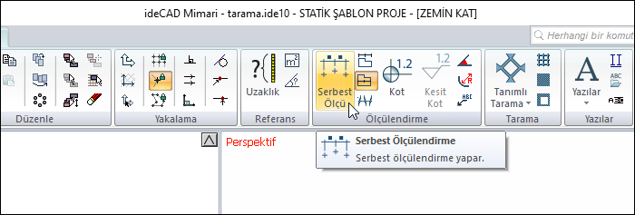 Serbest ölçülendirme ![]() Serbest ölçülendirme komutu çalışır. |